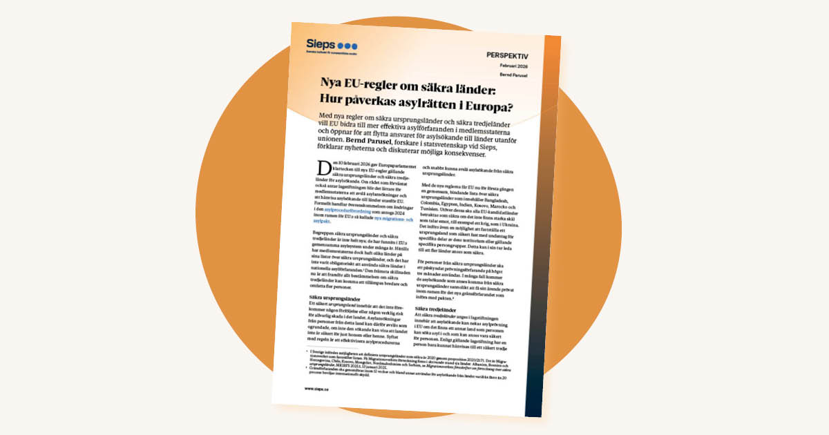 Med nya regler om säkra ursprungsländer och säkra tredjeländer vill EU bidra till mer effektiva asylförfaranden i medlemsstaterna och öppnar för att flytta ansvaret för asylsökande till länder utanför unionen. Bernd Parusel, forskare i statsvetenskap vid Sieps, förklarar nyheterna och diskuterar möjliga konsekvenser.